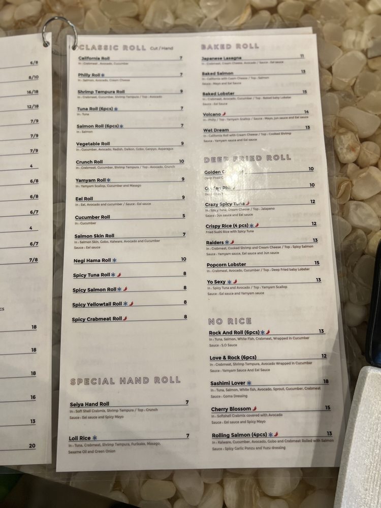 Shrimp tempura, cream cheese, avocado, deep fried. Out: Spicy crab, eel sauce, spicy mayo.