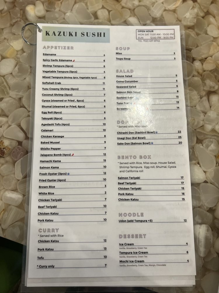 Kazuki Sushi is a hidden gem in Las Vegas, offering top-notch Japanese cuisine with a focus on sushi. Customers rave about the fresh and tasty dishes, such as the Mexican roll and the jalapeño bomb appetizer. The restaurant's calm and relaxing ambiance, along with its attentive and friendly staff, create a wonderful dining experience. Chef recommendations are spot on, leading to unforgettable meals that keep patrons coming back for more. The Bento boxes, including tempura and a choice of basic roll like salmon, are reasonably priced and delicious. Kazuki Sushi is a must-visit for sushi enthusiasts looking for high-quality, flavorful options in a welcoming setting. Whether you're a sushi connoisseur or new to Japanese cuisine, this restaurant is sure to impress.